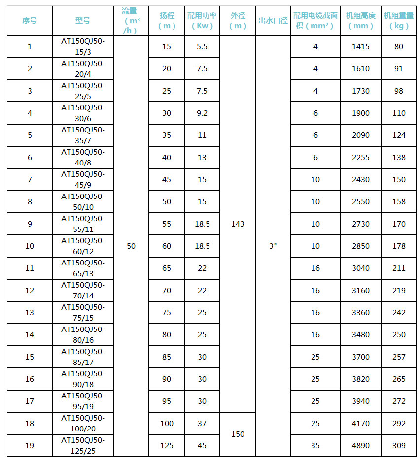 深井潛水泵部分QJ系列選型參照表