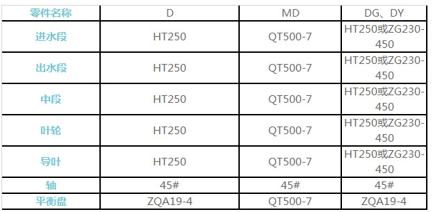 煤礦用耐磨多級離心泵材質(zhì)表